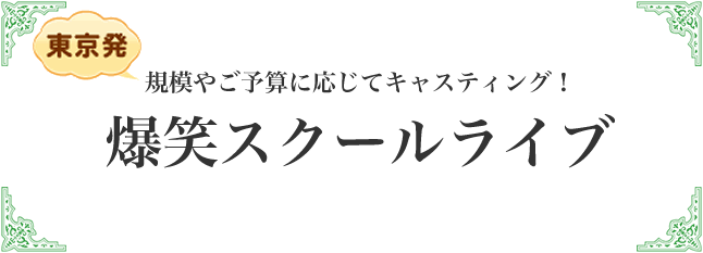 規模やご予算に応じてキャスティング! 学校での鑑賞会に沿った内容でお贈りします。 内容は出演芸人によって変わります。