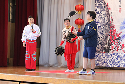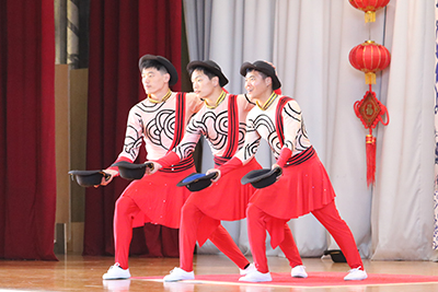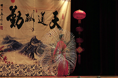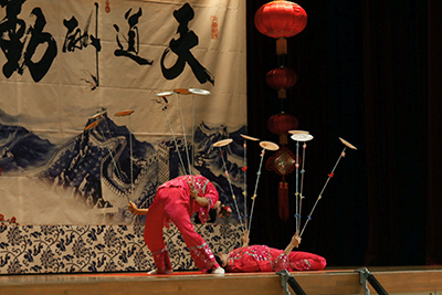 5名編成・90分・雑技のみのプログラムの一例※ 日程、公演時間により、編成が変わります。 中国の祝い事に欠かすことのできない伝統芸能。 獅子が飛び跳ねおどりながら、客席にも降りてきます。 ★ 皿回し