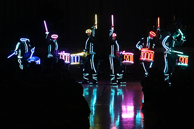 光る演奏! まわる演奏! 目にも止まらぬ速さのスティックさばき! |